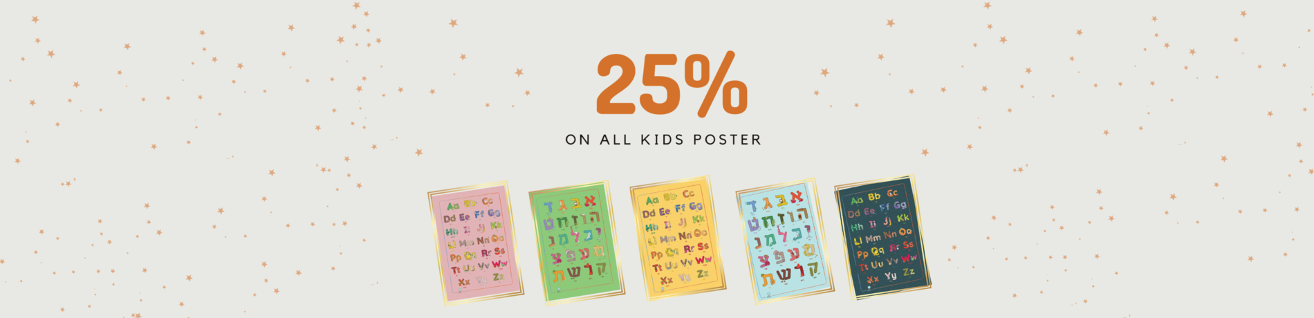 פוסטר לחדר ילדים / גן, מאויר באותיות האלף בית רקע תכלת